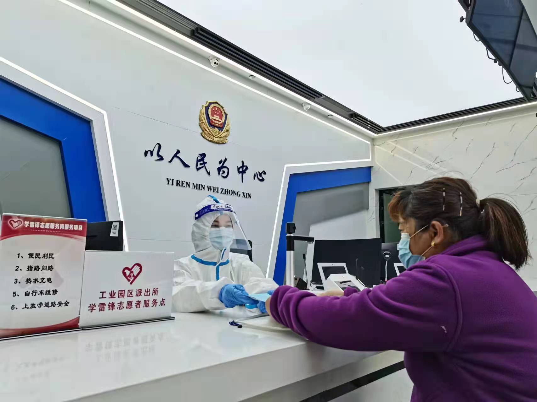 目前,铜山警方已经对全部警务工作者开展了防护服穿戴使用、个人防护知识的多轮云培训,警务保障部门积极争取,第一时间为基层单位下发警用防护服2600余套。在全区40余处户政、公安综合服务、接处警大厅等窗口单位,以及5处高速公路出入口全部实行工作人员着防护服上岗,警察蓝化身“蓝大白”。进入服务大厅必须查验场所码、行程码等。“热情服务是我们一贯的宗旨,严格防护和查验是为了城市的安全!”三堡派出所所长侯舫说。