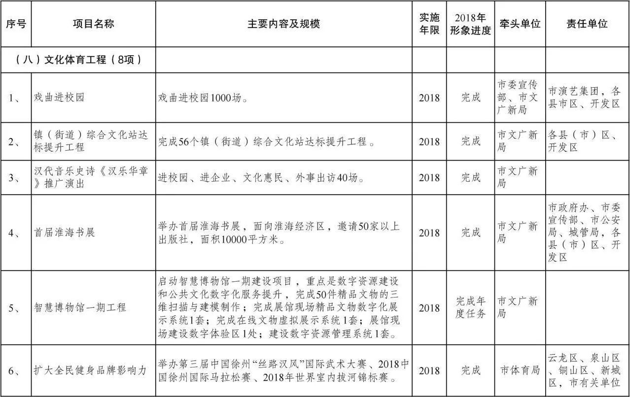 小编解读:在文化体育工程中,引起小编注意的是这两项,第一个就是扩大全民健身品牌影响力,其主要内容中,不仅包含了2018年将举办第二届的中国徐州国际马拉松赛,还将举办第三届中国徐州“丝路汉风”国际武术大赛以及2018年世界室内拔河锦标赛。